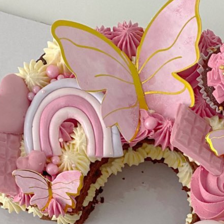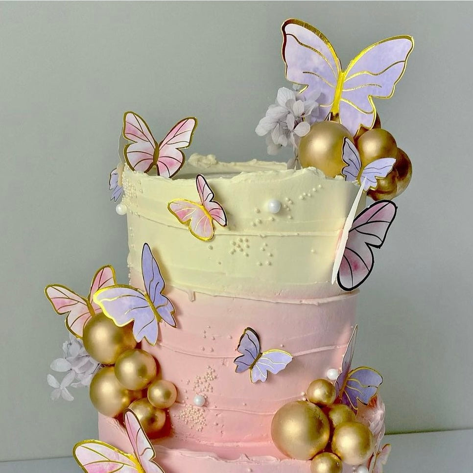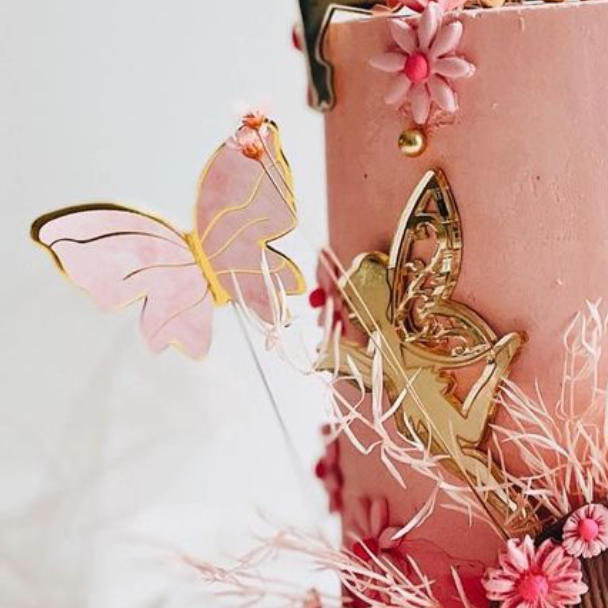 These pink and gold card stock butterflies are gorgeous to decorate cupcakes with or on cakes.