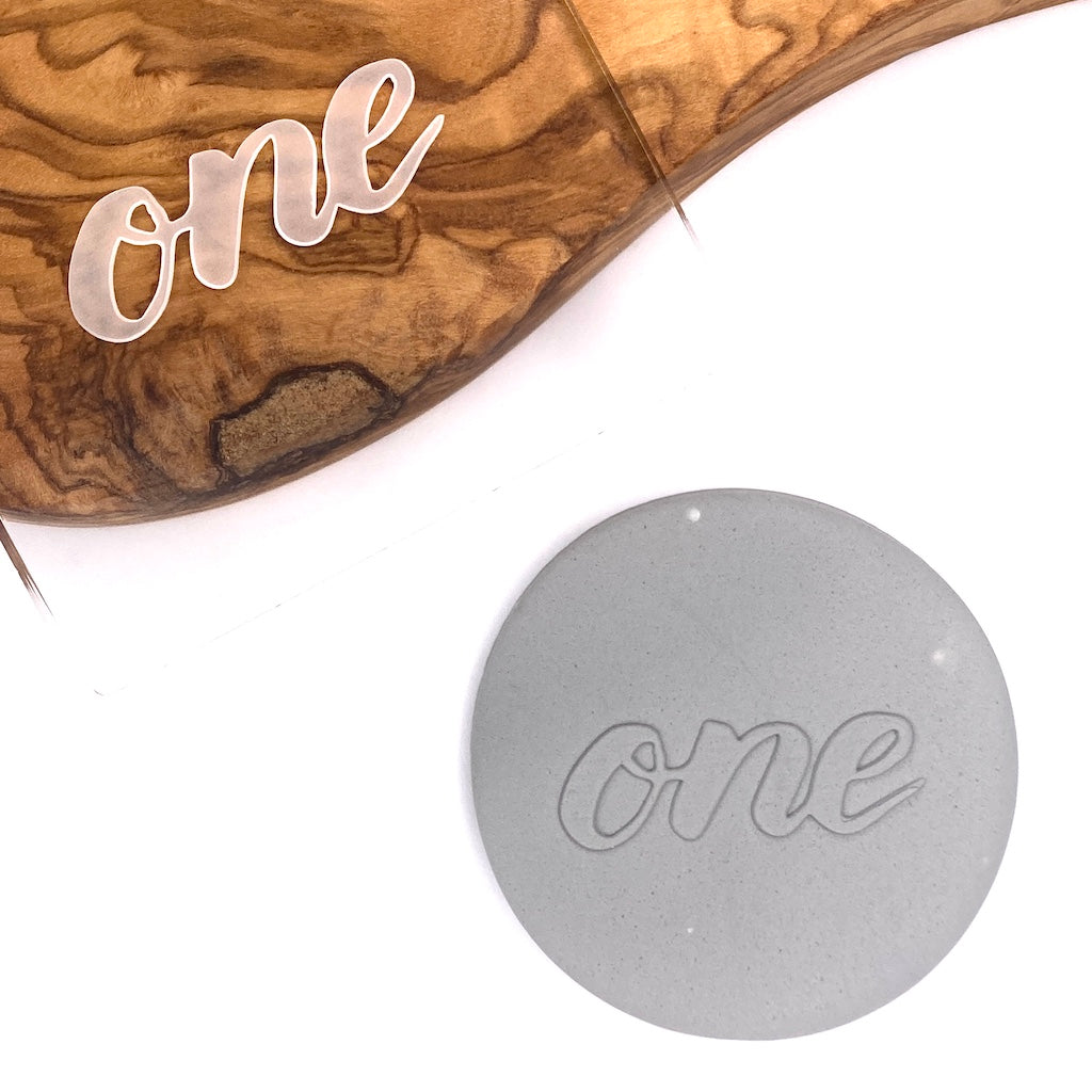 This word One cookie stamp debosser is great for creating detailed edible decorations for the first birthday cookies or cupcakes. Fondant stamps can be used with gum paste, sugar paste, fondant, modelling paste and more.
