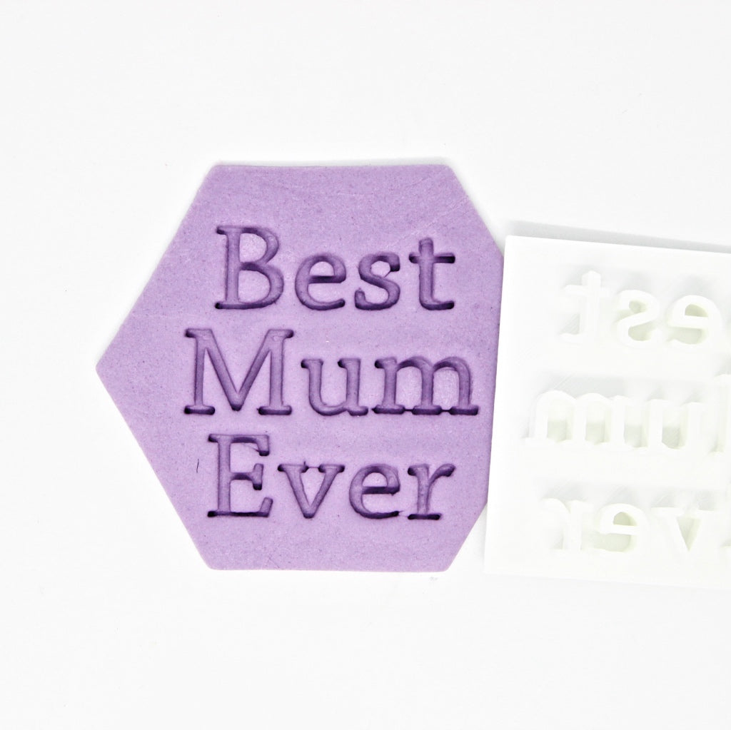 This "Best Mum Ever" cookie fondant embosser is great for creating detailed edible decorations for the birthday cakes or cupcakes. Can be used with gum paste, sugar paste, fondant, modelling paste and more. Make your figurines extra special, and use some lustre dusts to make it sparkle.