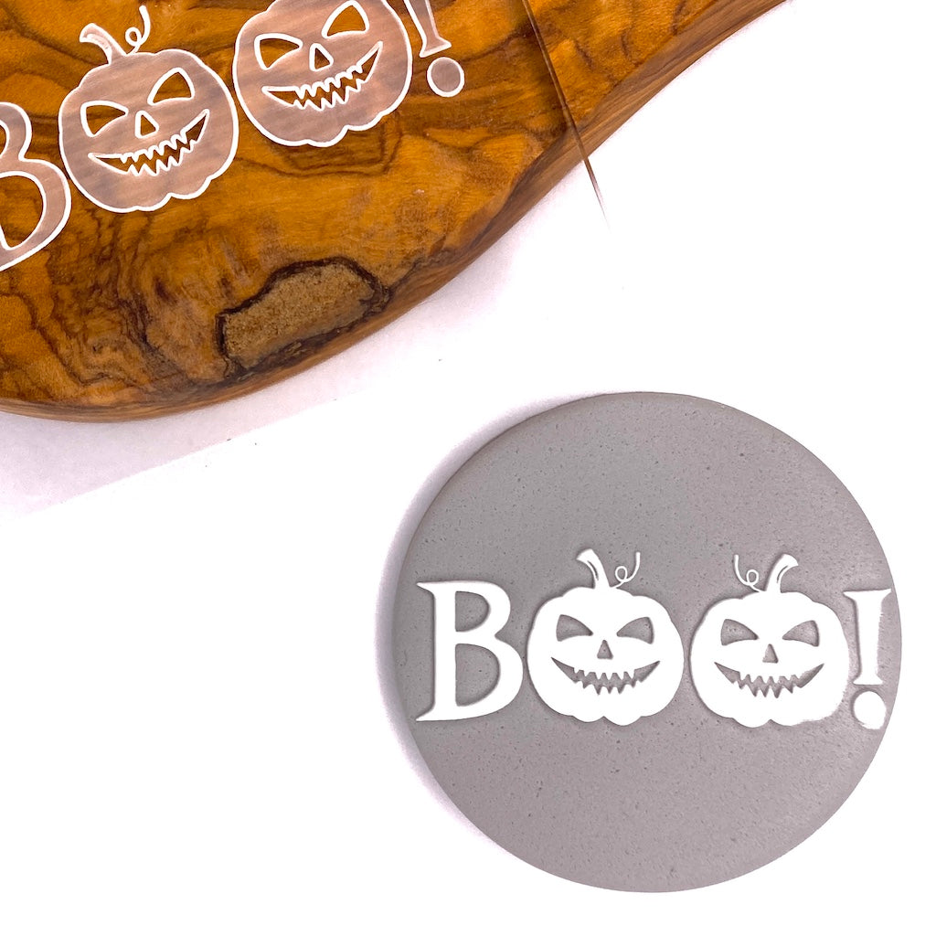 This Halloween Boo cookie stamp fondant embosser is great for creating detailed edible decorations for the Halloween's cookies or cupcakes. Our fondant stamps can be used with gum paste, sugar paste, fondant, modelling paste and more.