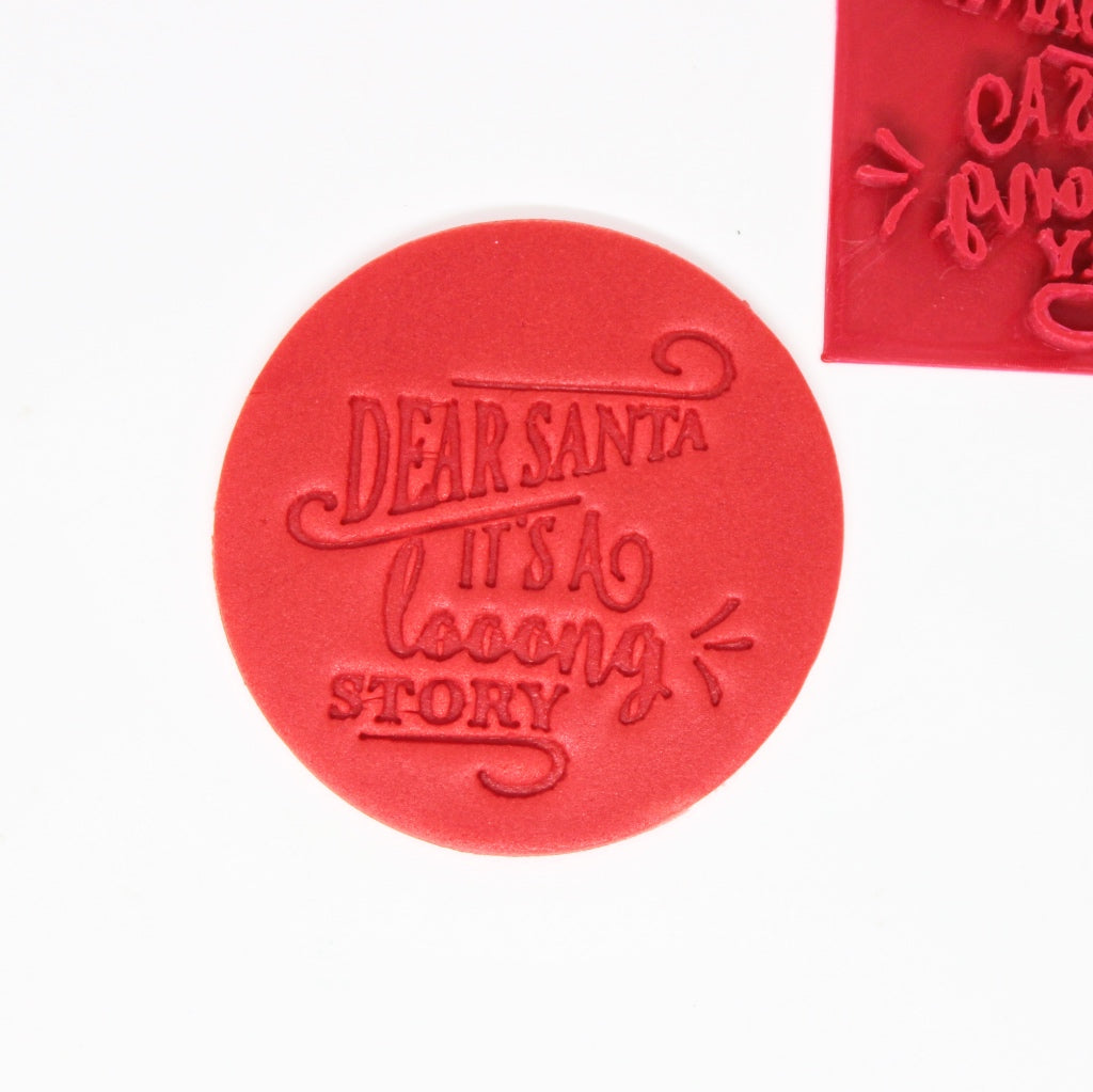 This Dear Santa cookie fondant embosser is great for creating detailed edible decorations for the Christmas cakes, cookies or cupcakes. Can be used with gum paste, sugar paste, fondant, modelling paste and more. Make your decorations extra special, and use some lustre dusts to make it sparkle.
