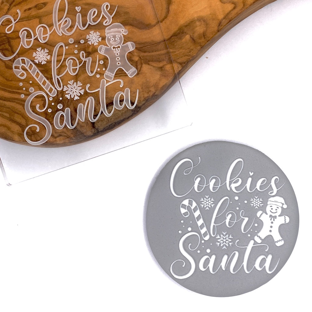 This Cookies for Santa cookie stamp debosser is great for creating detailed edible decorations for Christmas cookies, cakes or cupcakes. Cookie fondant embossers can be used with gum paste, sugar paste, fondant, modelling paste and more.