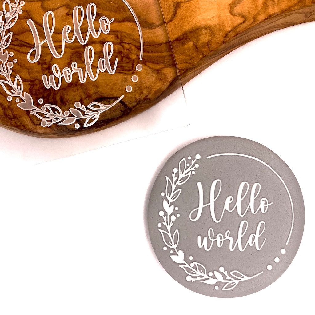 This Hello World cookie stamp debosser is great for creating detailed edible decorations for the baby shower cakes, sugar cookies or cupcakes. Fondant embossers can be used with gum paste, sugar paste, fondant, modelling paste and more.