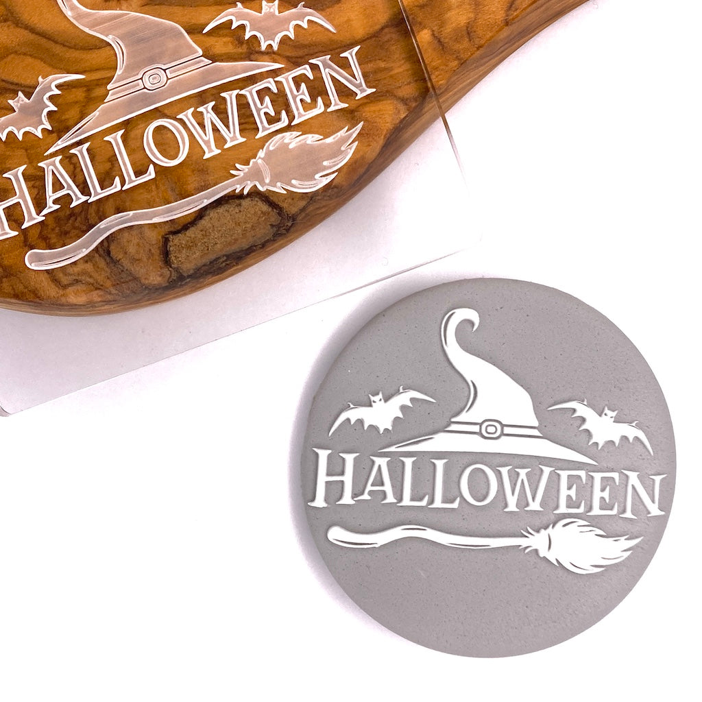 This Halloween Witch Hat and Broom cookie stamp fondant embosser is great for creating detailed edible decorations for the Halloween's cookies or cupcakes. Our fondant embossers can be used with gum paste, sugar paste, fondant, modelling paste and more.