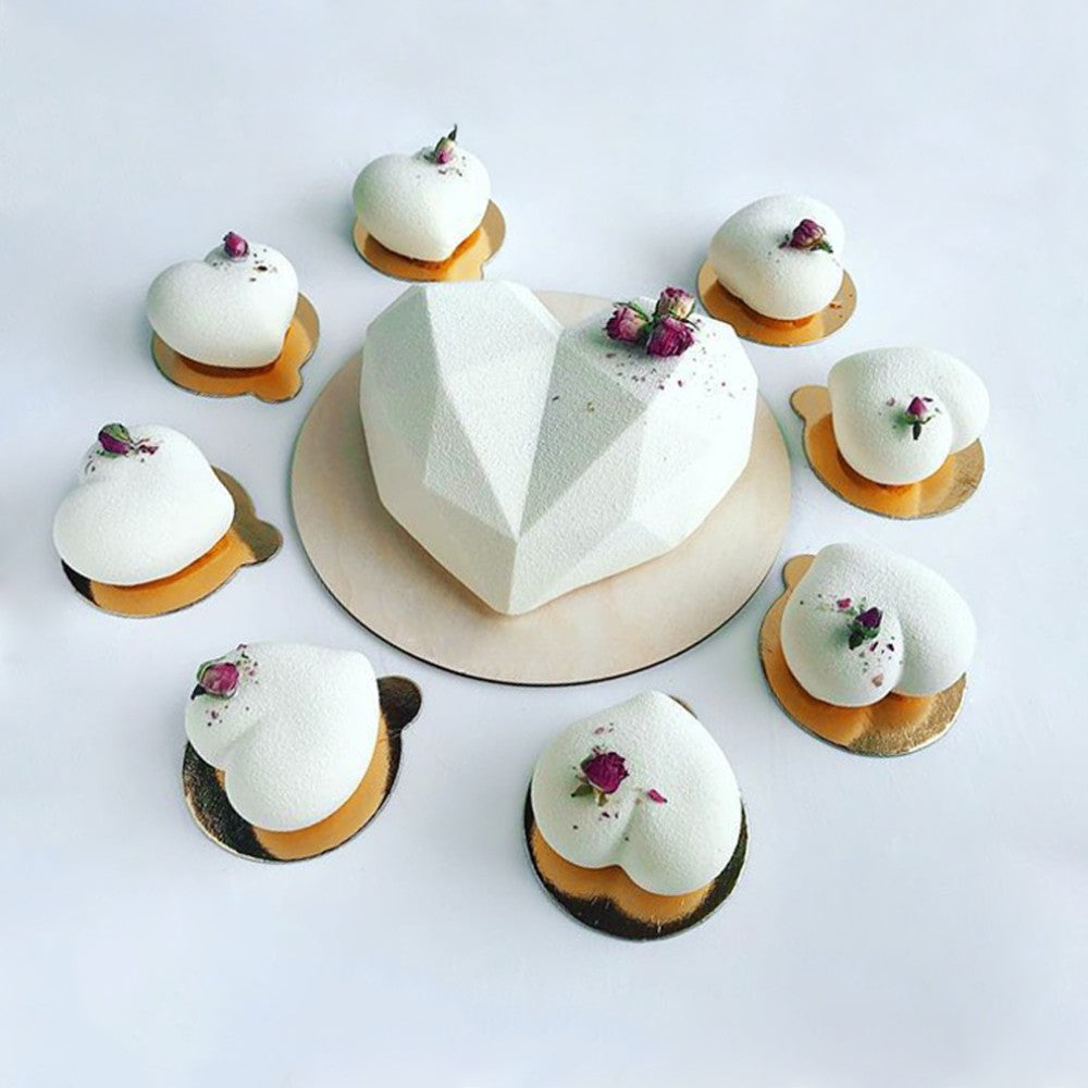 Using instructions: Fill the mould with your favourite dessert (ours is a chocolate mousse), place it in the freezer for at least 12 hours. Make sure the dessert is completely frozen, before turning it out. Decorate with mirror glaze, or with your favourite fruit and berries.