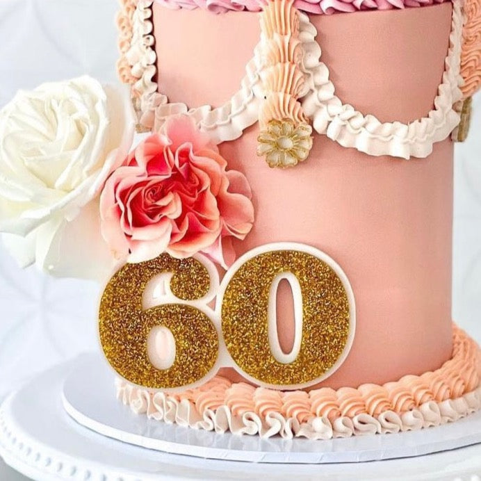 A perfect way to add unique touch to your 60th birthday cake with this acrylic double layered 60 cake fropper.