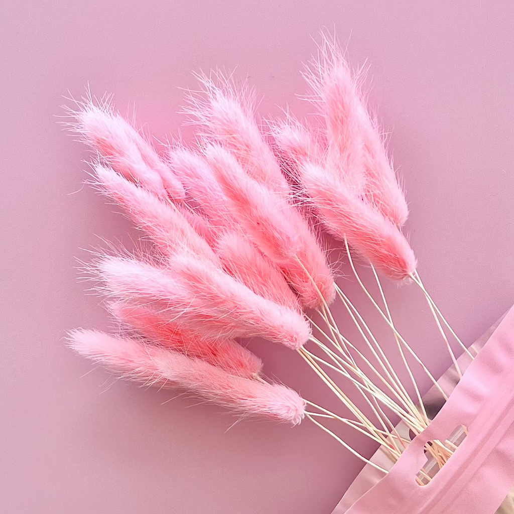 Dried Natural Bunny Tails Cupcake Toppers - Pink 20pc