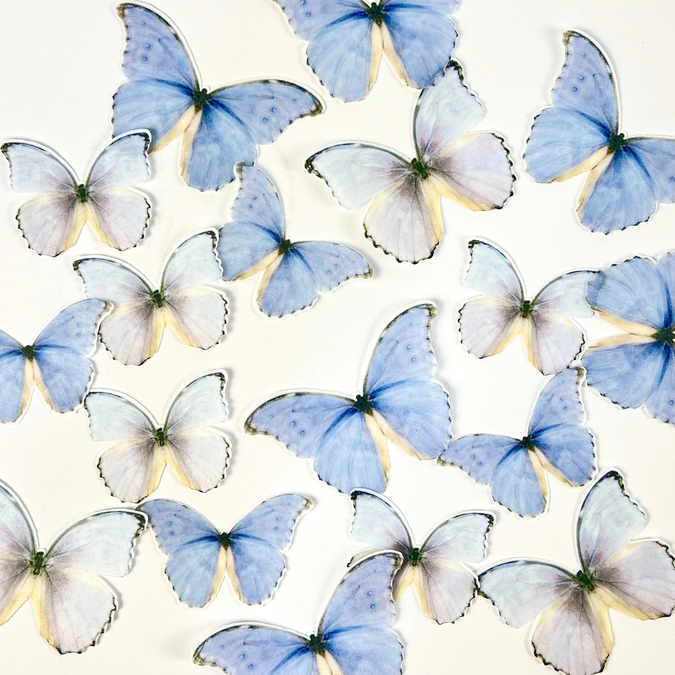 Edible Wafer Cupcake Toppers - Blue Purple Butterflies 18pc