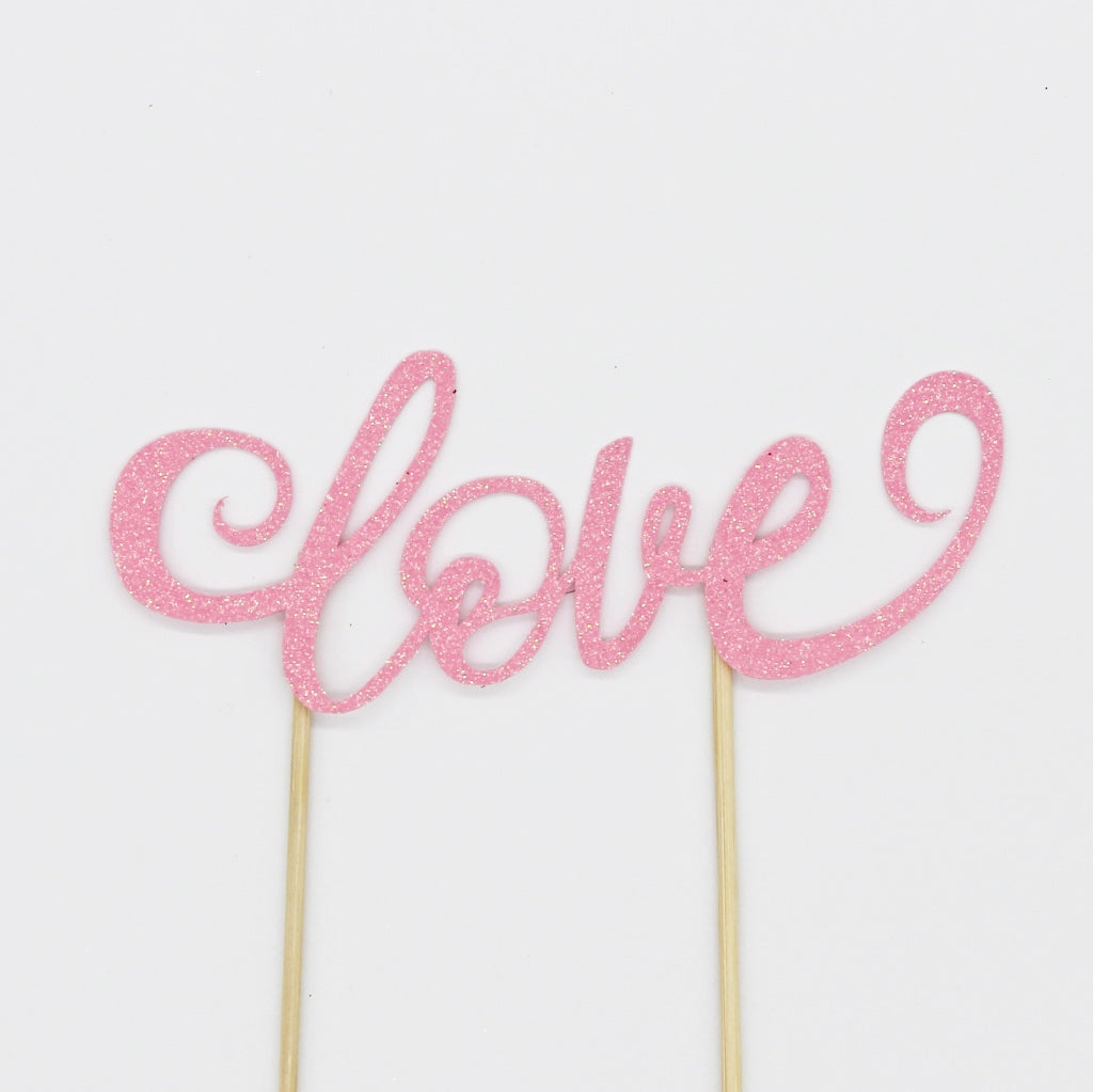 These Love wedding cake toppers are made out of 400gsm card paper with glitter finish, and are one sided only. Perfect to make your creations look extra special. Choose the colour to match the design of your cake.