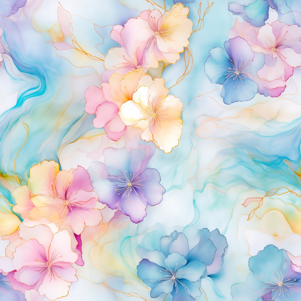 Bold, artistic, and full of movement - our Ink Bloom custom greaseproof paper captures the fluid beauty of alcohol ink art, blending vivid florals in blue, purple, orange, and soft pink tones.