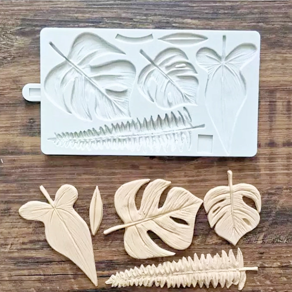 This tropical leaves silicone mould is great for creating exciting and detailed tropical themed decorations out of gum paste, sugar paste, fondant, modelling paste, chocolate and more.