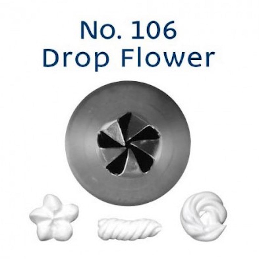 This no.106 drop flower piping tip is ideal for piping 'one squeeze' drop flowers and rosettes. Loyal piping nozzles are professional grade.
