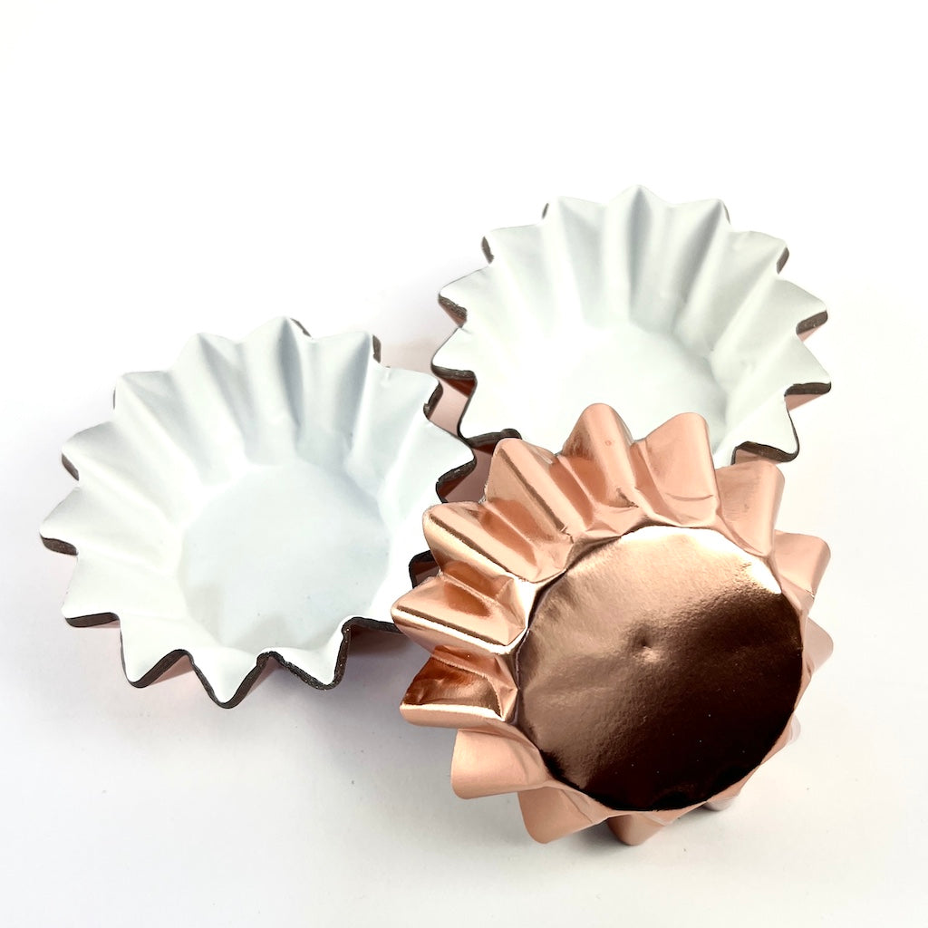 More Cuppies Rose Gold Foil Liners are food grade paper lined for your safety. These will reduce the change of oil bleed and colour bleed.