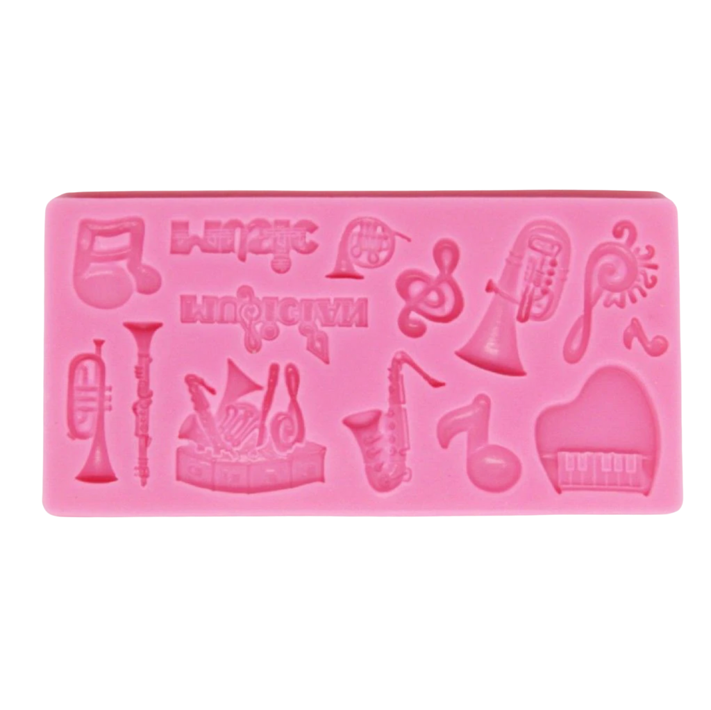 This musical instruments silicone mould is great for creating exciting and detailed edible decorations for cakes, cupcakes, cookies, macarons and more. This silicone mould can be used with gum paste, sugar paste, fondant, modelling paste, chocolate and more.