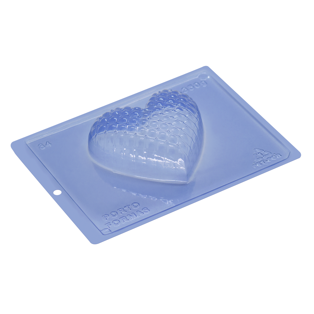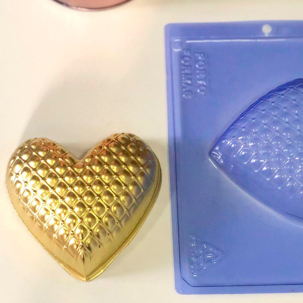 This plastic 3 piece chocolate mould – Matelasse Love Heart is popular for making edible chocolates filled with soft or hard fillings. Perfect mould to make some Valentine's Day treats.