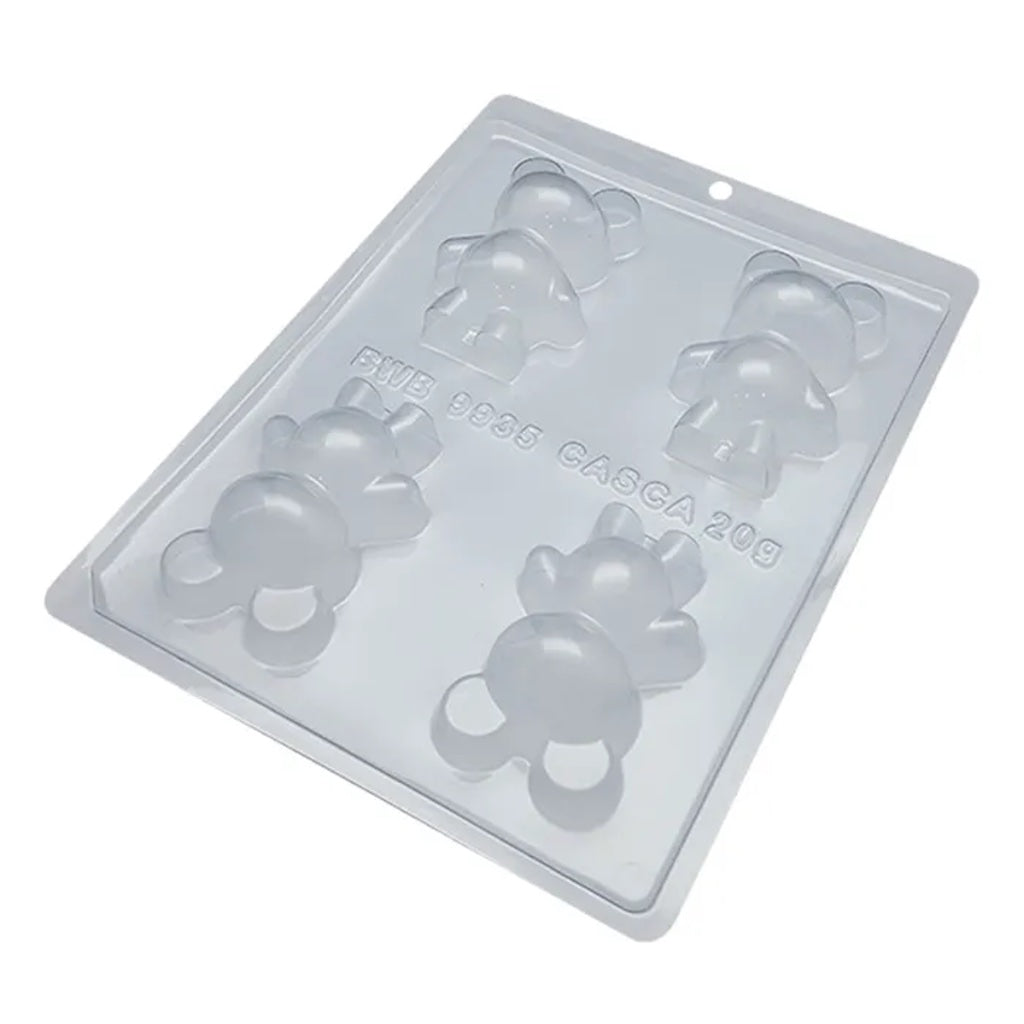 This plastic 3 piece chocolate mould – Small Bears is popular for making edible chocolates filled with soft or hard fillings.