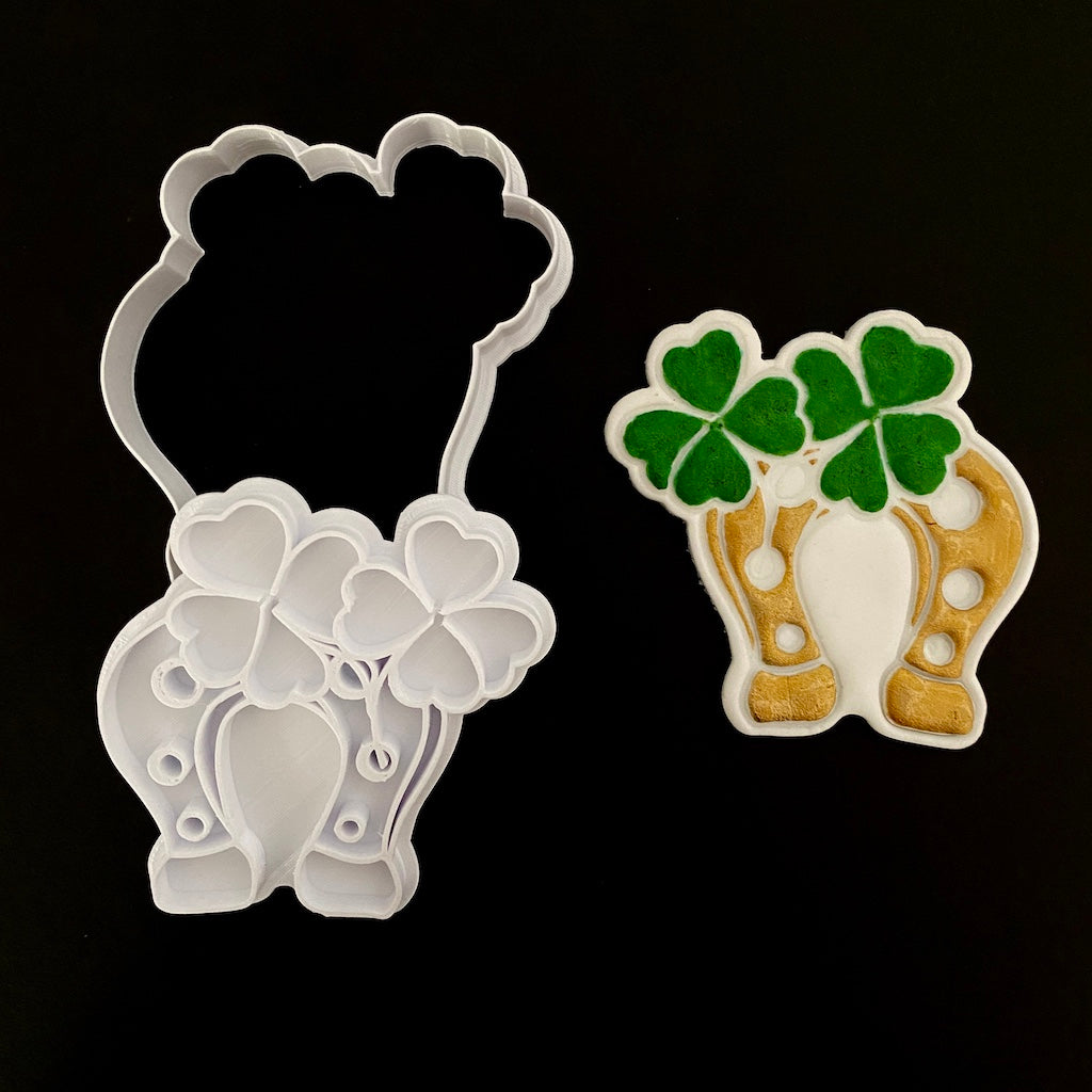 Plastic Cookie Cutter + Cookie Stamp - Horseshoe with Shamrock