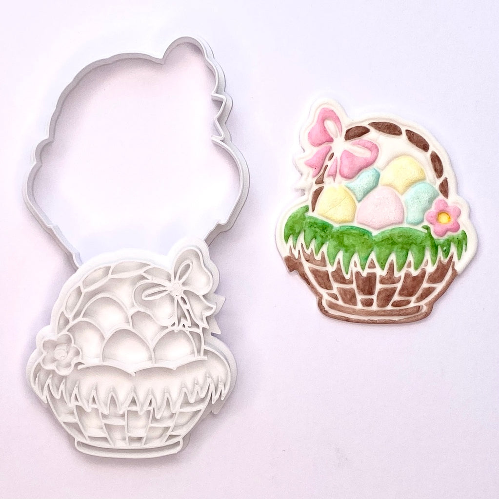 Plastic Cookie Cutter + Fondant Embosser - Easter Egg Basket