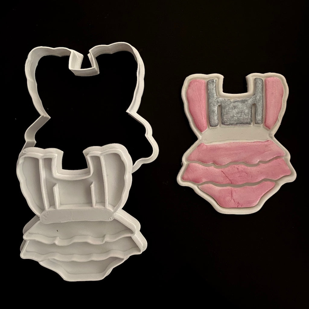 Plastic Cookie Cutter + Cookie Stamp - Frilly Baby Tutu Dress