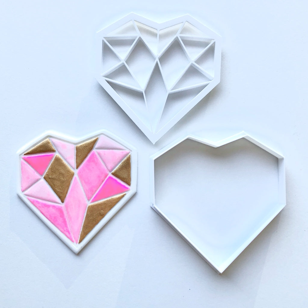 Plastic Cookie Cutter + Fondant Embosser - Geometric Love Heart