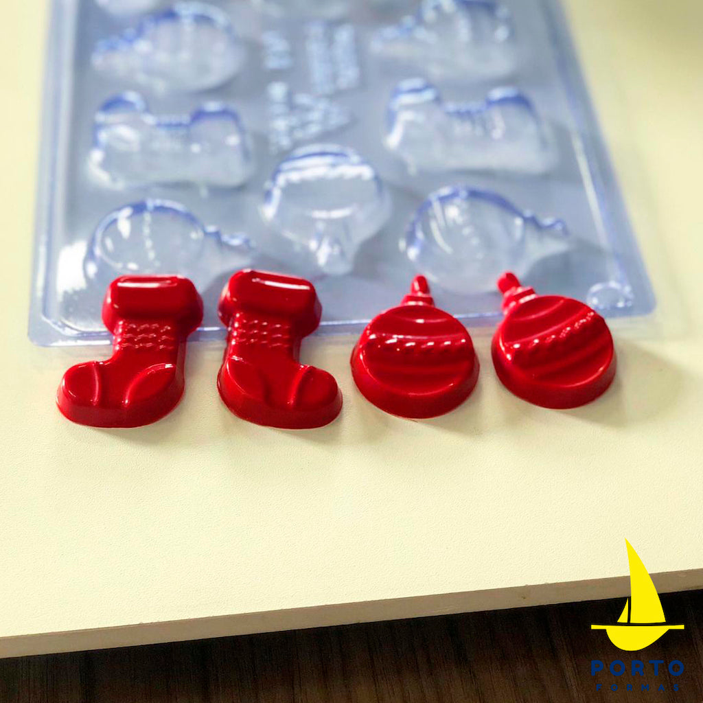 This plastic chocolate mould – Christmas Baubles and Boots is popular for making edible chocolates filled with soft or hard fillings. Perfect mould to make some Christmas treats.
