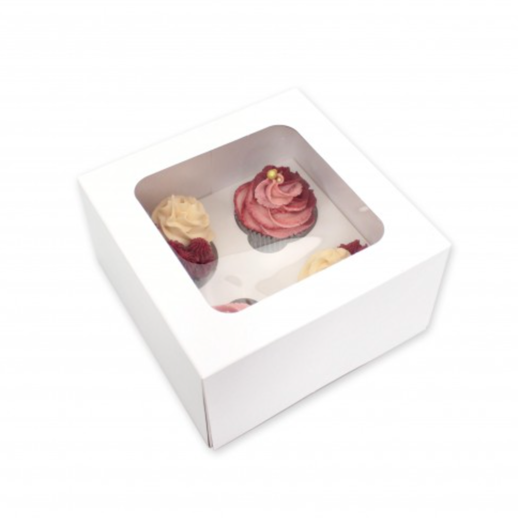 Regular Cupcake Box with Window and Insert - 4 Holes 25 Pack