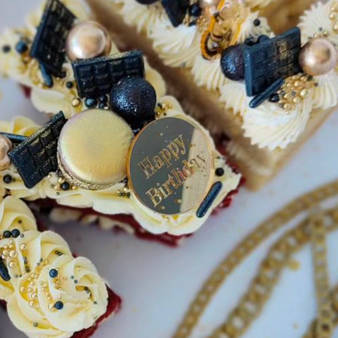 These acrylic cupcake toppers will arrive with a protective film on them to protect them from dust and scratches. This needs to be peeled off before using to showcase the luxurious reflection.