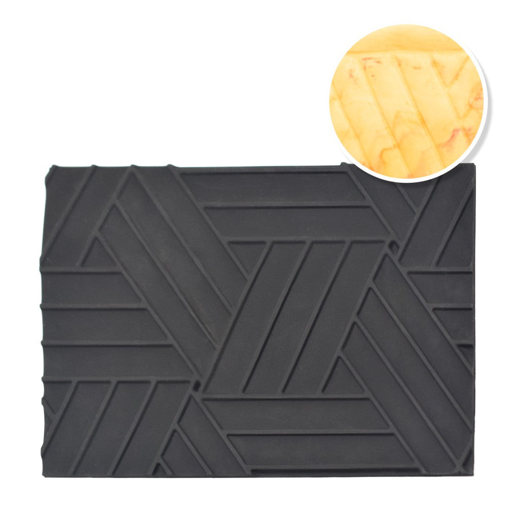 This geometrical texture silicone mat is great for creating exciting and detailed edible decorations for your next cake, cupcakes, cookies, macarons and more. Can be used with gum paste, sugar paste, fondant, modelling paste, chocolate, clay and more. This impression mat can be used as a insert in MCM-01 Log silicone cake mould, to give your next mousse cake professional looking imprint.