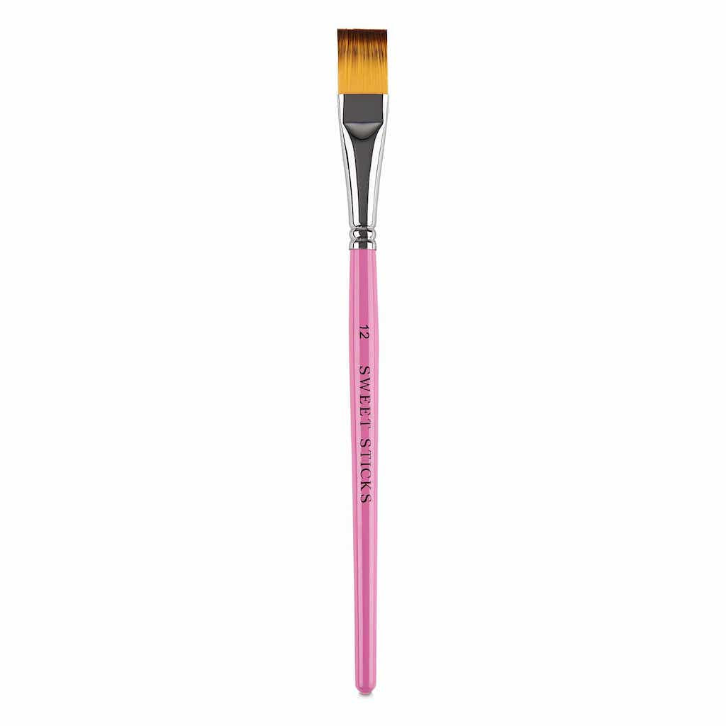Professional grade cake decorating Flat Brush - #12 from Sweet Sticks. This brush is great for wide strokes when you want a lot of coverage. Flat brushes have a square end with medium to long bristles.