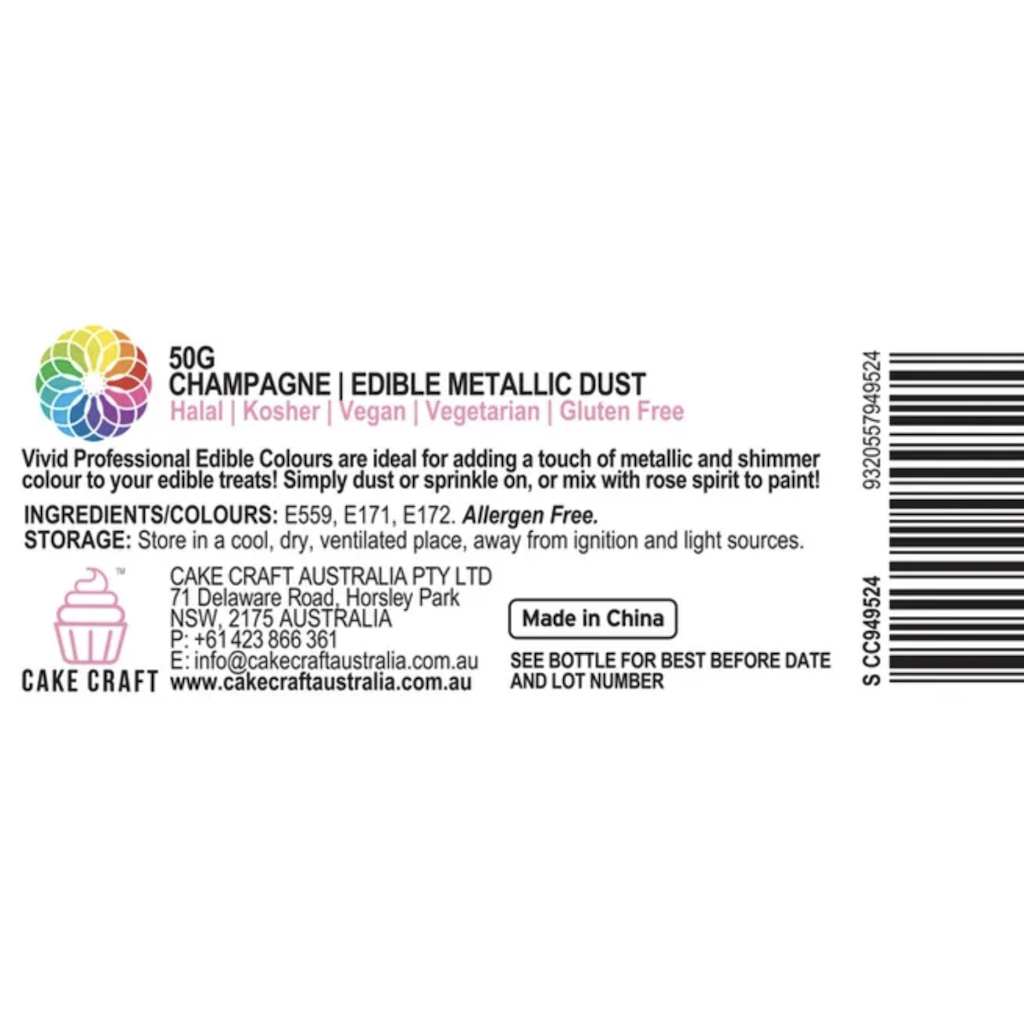 Vivid Edible Metallic Lustre Dust 50g - Champagne Gold
